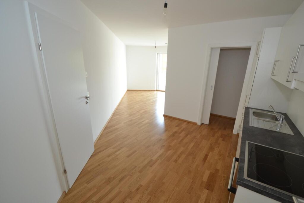 Diese 2 Zimmer Wohnung (Top 25) im 3. Obergeschoß ist aufgeteilt in eine geräumige Wohnküche, ein Schlafzimmer, Bad mit WC und einem Balkon. Die Einbauküche ist mit Top Markengeräten ausgestattet.