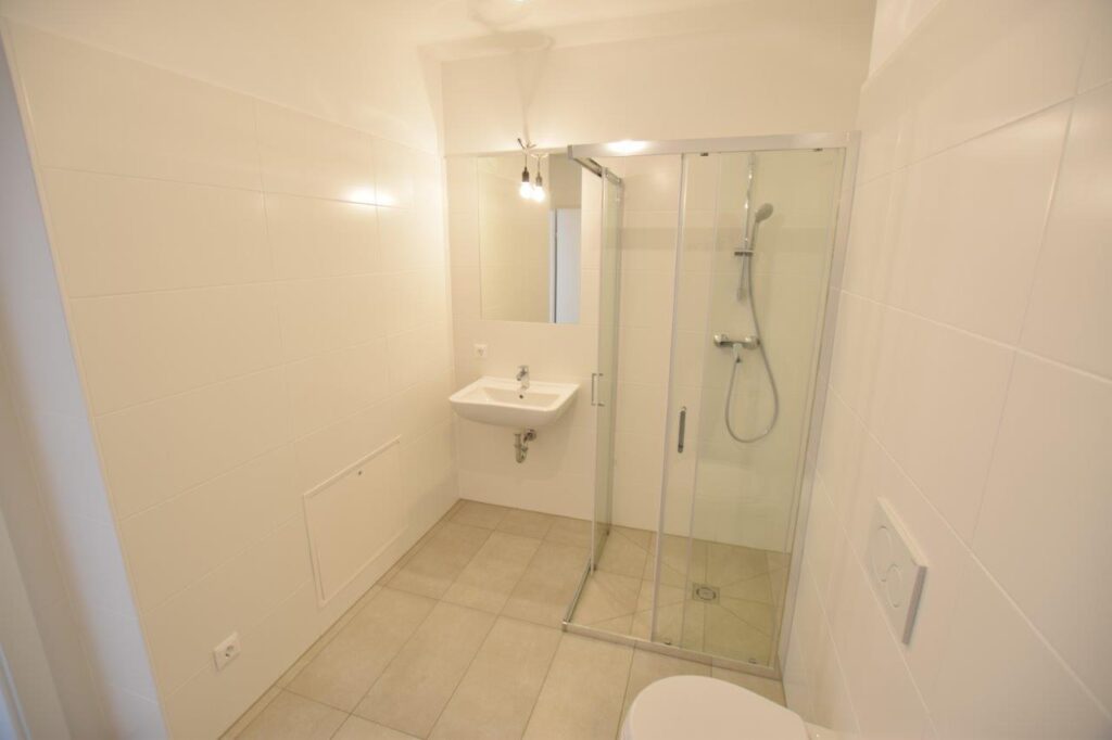 Diese sonnige 2 Zimmerwohnung im 1.OG (Top 13) ist aufgeteilt in eine Wohnküche, einem Schlafzimmer sowie einem Badezimmer mit Dusche.
